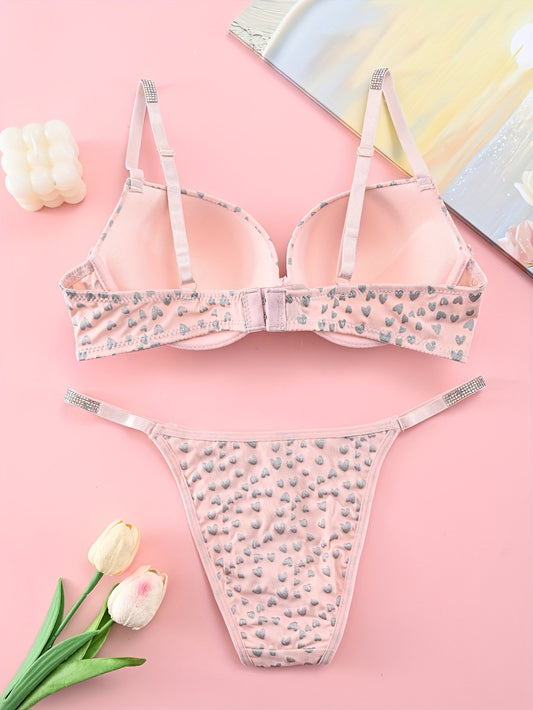 Sexy Graffiti Heart Print Beautiful Back Pull-On Bra Set