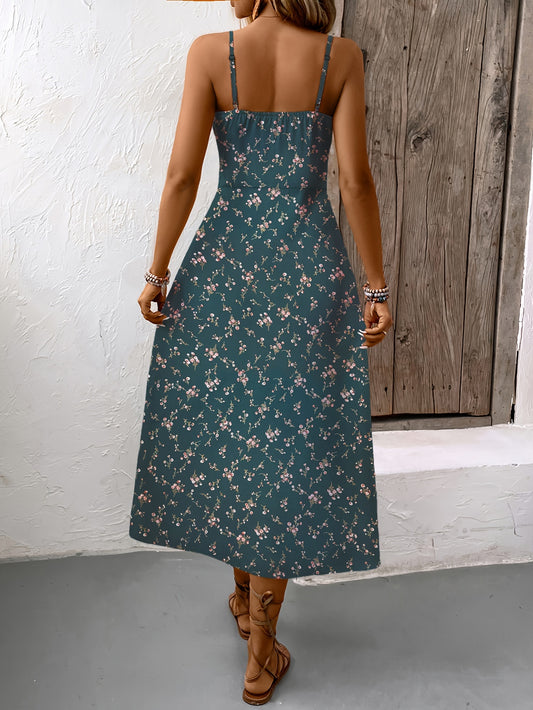 Floral print maxi dress with adjustable spaghetti straps
