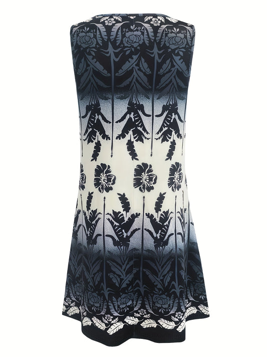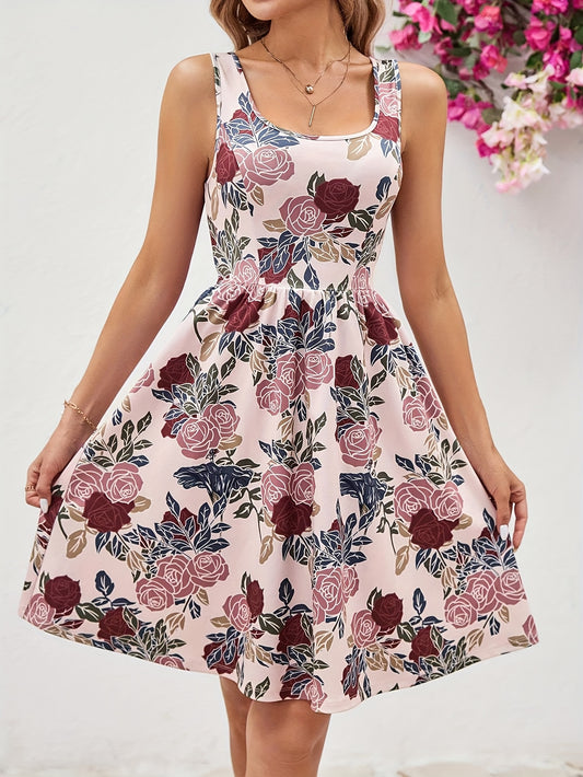 Women's Fashion Floral Print Sleeveless Tank Dress - Casual Crew Neck