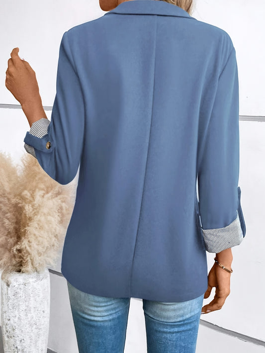 Solid color front opening, elegant long sleeve blazer