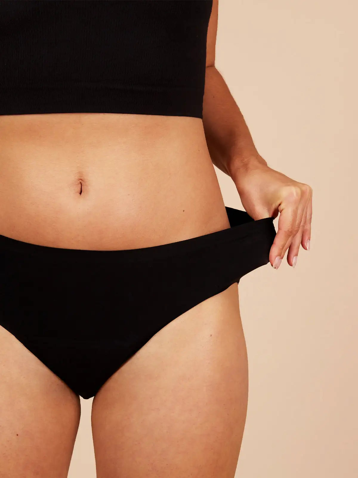 In partnership with experts in microfibre technology, our new patent-pending one-size underwear is made using our revolutionary NuStretch® fabric, stretching across multiple sizes and moulding to every body type, while retaining stretch perfectly. Our reliable built-in leakproof tech absorbs all life's leaks — from periods to incontinence.